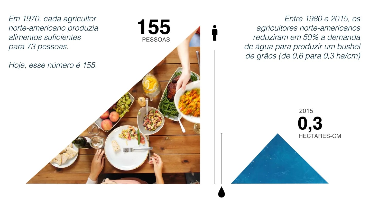 A inovação está nos ajudando a realizar ainda mais coisas na agricultura, como a redução no uso de terras e no uso de recursos naturais.